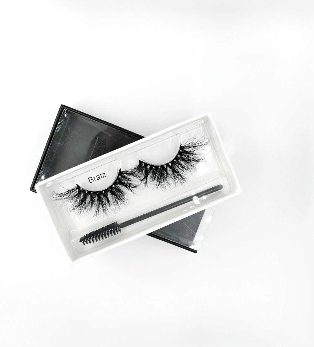 Our 3D 25mm Luxury Mink lashes are made with 100% mink hair. If you're looking for a Wispy lash look our "Bratz" lashes will be the perfect match for your eyes. You're able to cut the lashes to fit your eye shape. With proper care the lashes are reusable(up to 25 wears). The lashes are very lightweight!