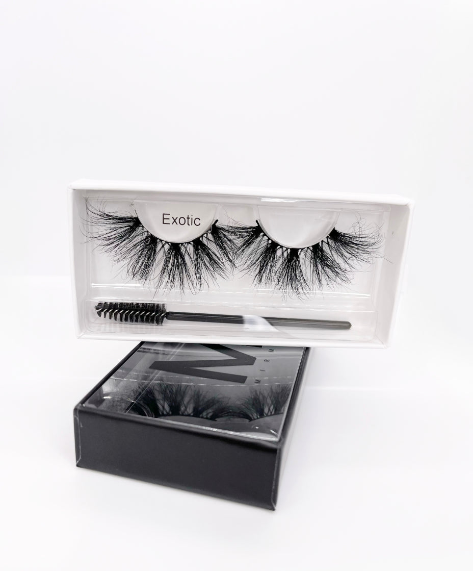 Our 3D 25mm Luxury Mink lashes are made with 100% mink hair. If you're looking for a wispy wild lash look our "Exotic" lashes will be the perfect match for your eyes. You're able to cut the lashes to fit your eye shape. With proper care the lashes are reusable(up to 25 wears). The lashes are very lightweight!