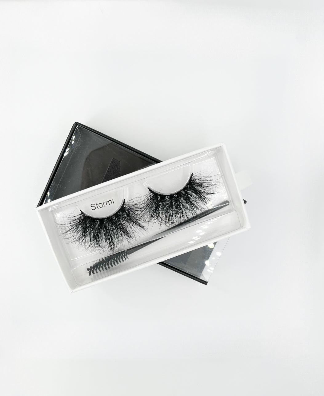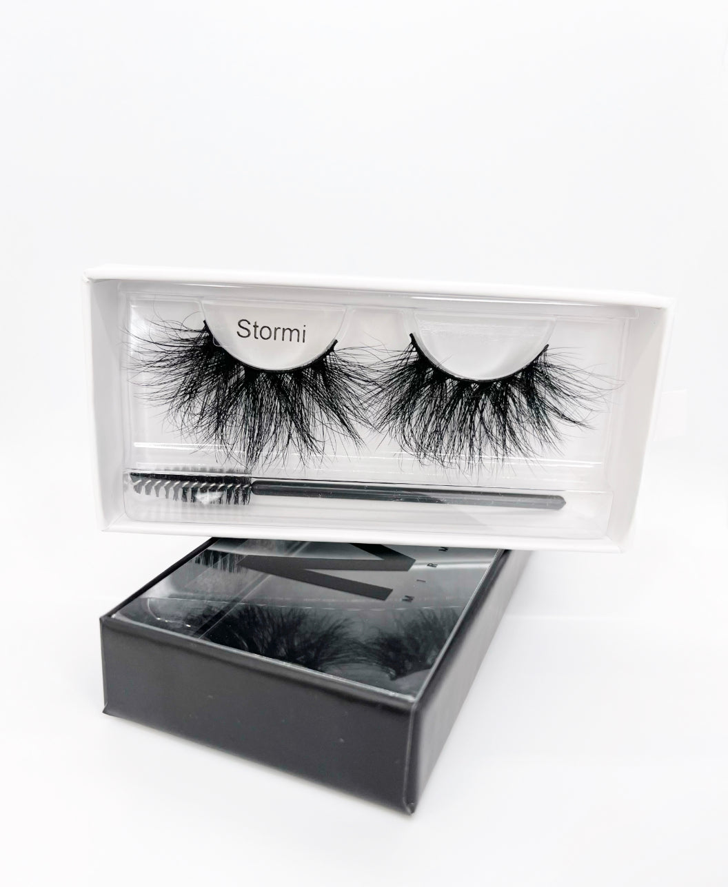 Our 3D 25mm Luxury Mink lashes are made with 100% mink hair. If you're looking for a fuller bold wispy lash look our "Stormi" lashes will be the perfect match for your eyes. You're able to cut the lashes to fit your eye shape. With proper care the lashes are reusable(up to 25 wears). The lashes are very lightweight!